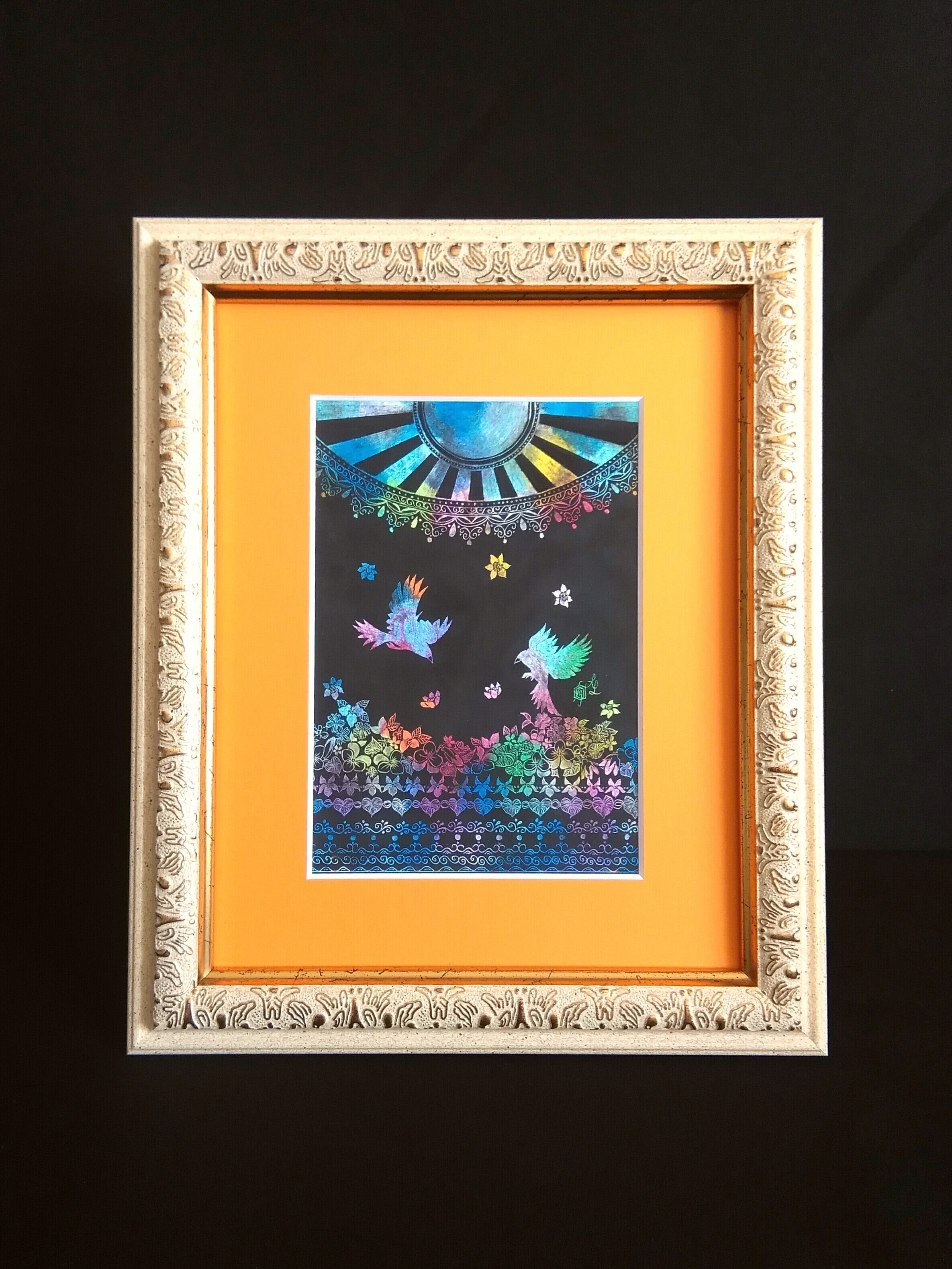 *作品の表面は大変デリケートです。額から作品を取り出す際は、引っかいたり傷つけたりしないよう、ご注意下さい。