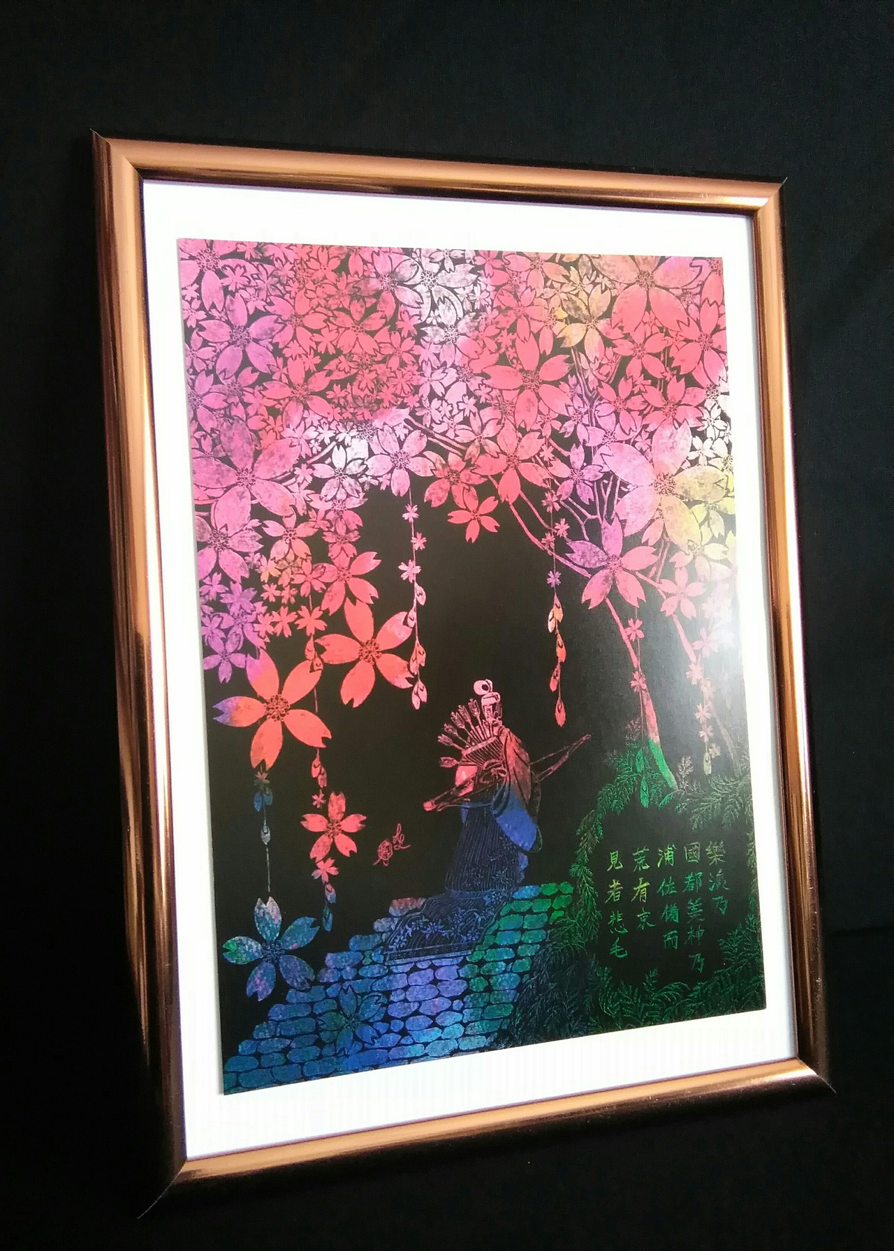 『楽浪乃 国都美神乃 浦佐備而 荒有京 見者悲毛』複製画